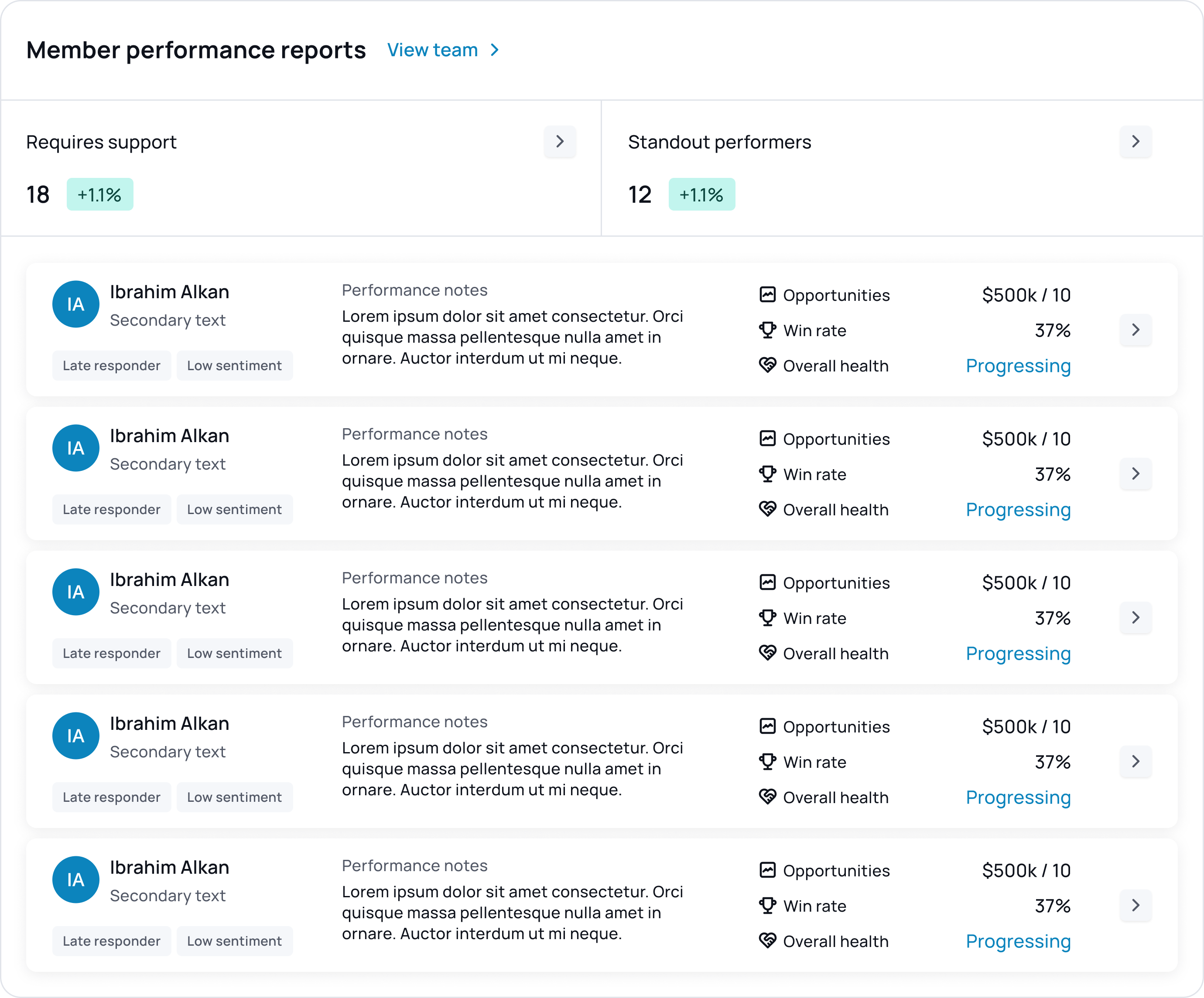 - Targeted Coaching Focus on the highest-impact development areas for each individual rep