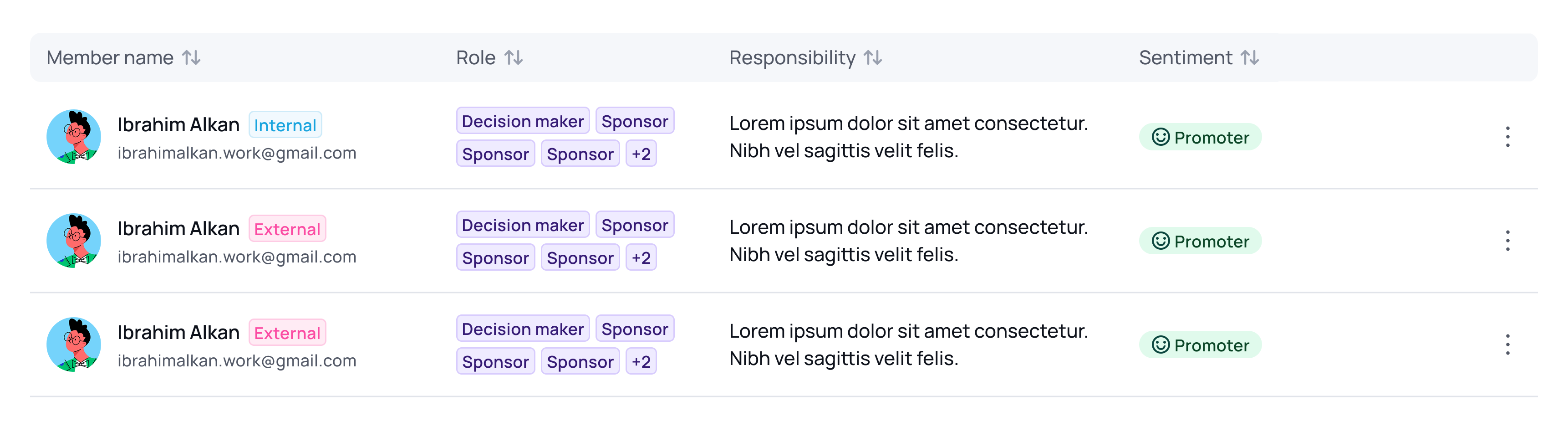 Get customized engagement strategies for each stakeholder based on their role, influence level, engagement history, and decision-making authority.