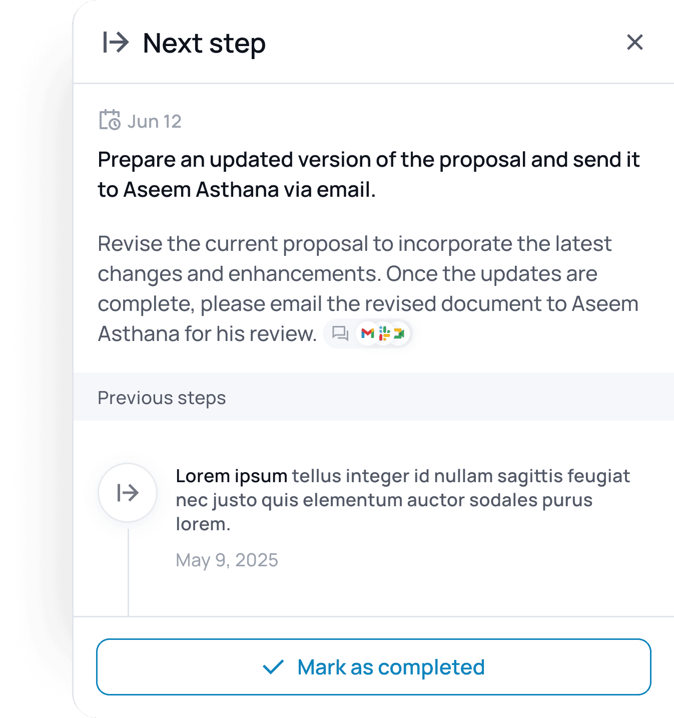 Get intelligent prioritization of all next actions based on deal health, stage progression, potential impact, and time-to-close optimization.