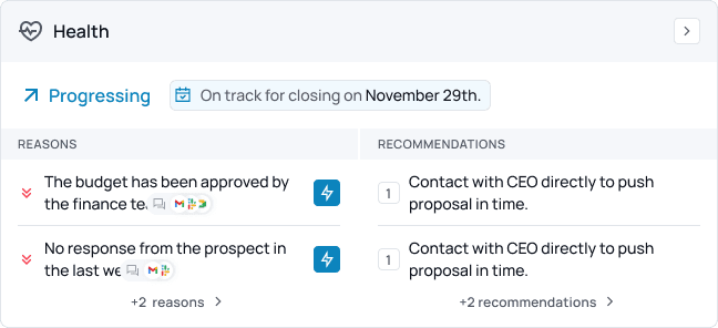 By prioritizing the right deals and uncovering friction early, Amolino keeps momentum high and focuses your team's time where it counts most.